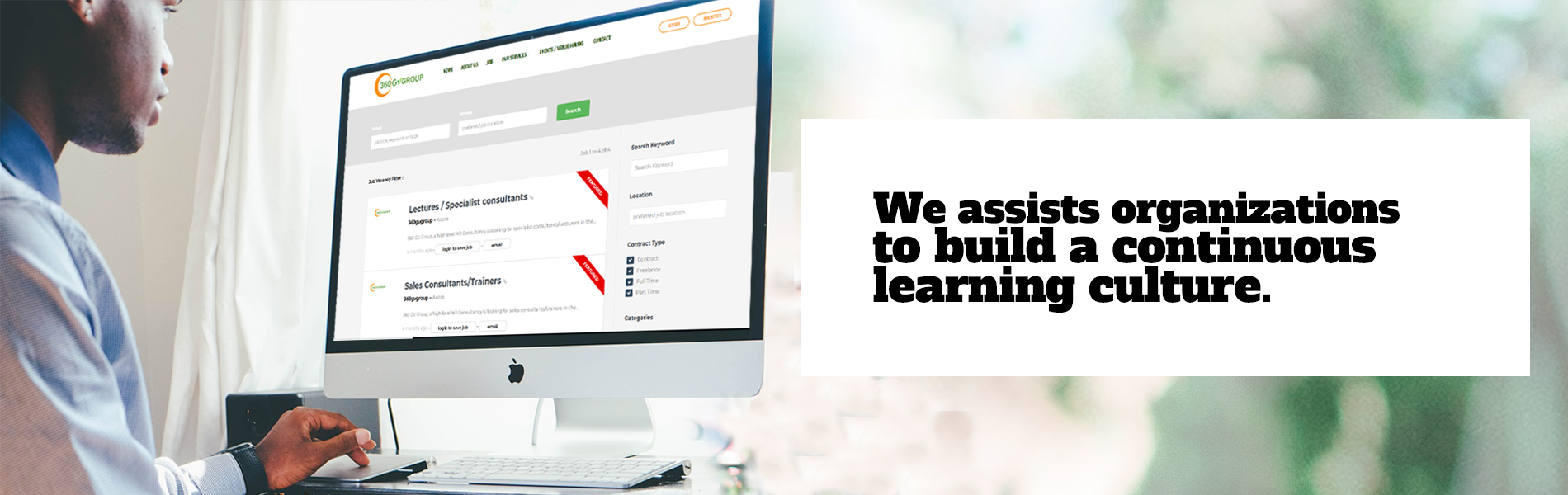 360gv Group assists organizations to build a continuous learning culture. This can be done by signing on to any of our training programs which builds and eventually improve employee performance through programs that are customized to give maximum benefit to all participants